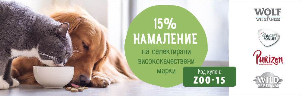 🐶🐱 Грабнете 15% намаление на марките Concept for Life , Purizon, Wolf of Wilderness и Wild Freedom! Въведете код купона ZOO-15 в полето Ваучер / Намаление при завършване на поръчката и отстъпката ще се се калкулира автоматично във Вашата количка. 💚