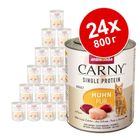 24 консерви Animonda Carny Ocean, 80 г, с етикет 'Weißer Thunfisch + Ente', изображение на котка и храна върху опаковката. Видими различни вкусове в комплекта.