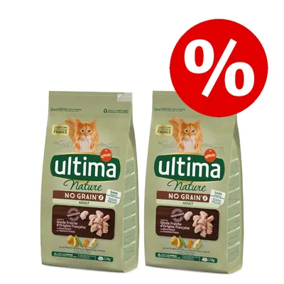 Лимитирана оферта! Само за кратко купете 2 х 1,1 кг / 1,25 кг Ultima Cat Nature, суха храна за котки на специална, намалена цена!